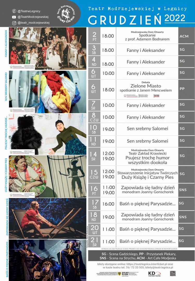 Repertuar Teatru im. H. Modrzejewskiej - grudzień 2022