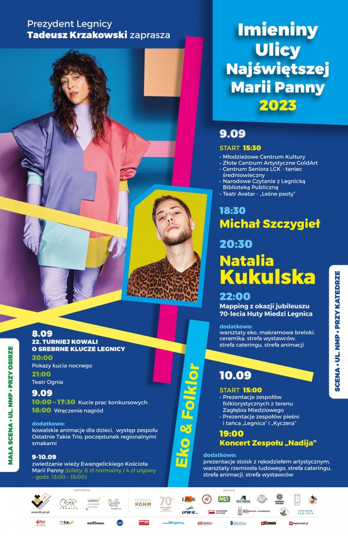 Pierwszy dzień celebracji Imienin Ulicy (sobotę, 9 września) rozpoczniemy spektaklem dla najmłodszych. Następnie scenę przejmą lokalni wykonawcy, a głównymi muzycznymi atrakcjami wieczoru będą koncerty Michał Szczygieł - finalisty programu The Voice of Poland mającego na koncie debiutancki album "Tak jak chcę" i nominację do Fryderyka - oraz Natalia Kukulska. Wokalistka znana z takich przebojów jak "Piosenka światłoczuła" czy "Im więcej ciebie tym mniej" wydała już trzynaście albumów studyjnych, a ostatni z nich - "Czułe struny" - w całości opiera się na kompozycjach Fryderyka Chopina. Z pewnością w trakcie Imienin Ulicy Najświętszej Marii Panny usłyszymy zarówno garść starych hitów, jak i nieco świeżych kompozycji.