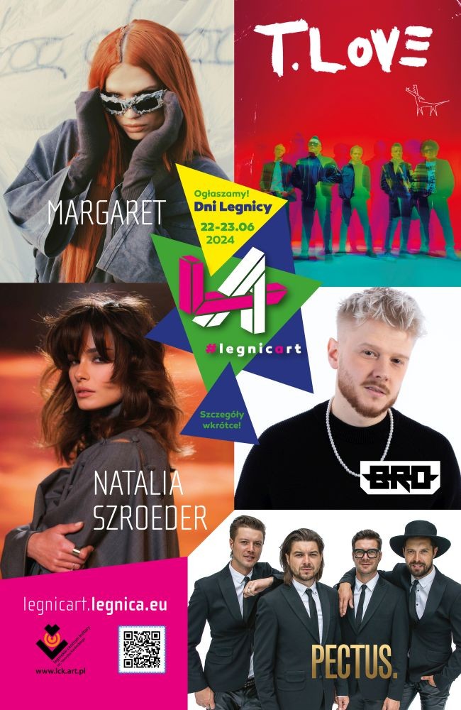 W sobotę, 22 czerwca, na dobry początek Dni Legnicy wystąpi grupa kilka czułości - laureaci ubiegłorocznego legnickiego Przeglądu Muzycznego PMRock'23 przede wszystkim poruszający się w klimatach delikatnej liryki. Będzie też coś dla miłośników znacznie bardziej tanecznych rytmów - w wyprawę po popowo-hiphopowych klimatach zaprosi nas B.R.O., natomiast odpowiednią dawkę radiowych hitów zagwarantuje Natalia Szroeder, której utwory takie jak "Powietrze" i "Zamienię Cię" zdobyły już dziesiątki milionów wyświetleń. Równie przebojowo będzie także podczas koncertu zespołu Pectus kończącego pierwszą część Dni Legnicy 2024 - bracia Szczepanik zaprezentują zestaw swoich największych szlagierów, zawsze skutecznie rozgrzewających publiczność.