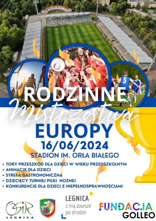 Ośrodek Sportu i Rekreacji w Legnicy wspólnie z Fundacja GOLLEO oraz Miedź Legnica serdecznie zapraszają 16.06.2024r. ( niedziela ) na Stadion Miejski w Legnicy gdzie odbędą się Rodzinne Mistrzostwa Legnicy