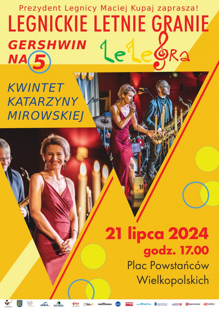 Na pierwszy z cyklu otwartych wakacyjnych koncertów Legnickie Centrum Kultury zaprasza już w niedzielę, 21 lipca. Na Placu Powstańców Wielkopolskich wystąpi Kwintet Katarzyny Mirowskiej w programie "Gershwin na 5". Początek wydarzenia o godzinie 17.00.