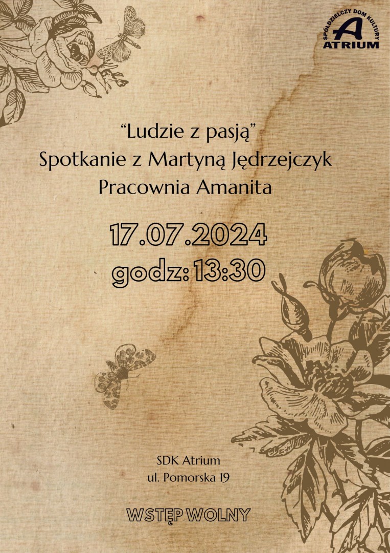 Już w najbliższą środę- 17.07 o godzinie 13.30 odbędzie się spotkanie z artystką Martyną Jędrzejczyk w ramach naszego cyklu "Ludzie z pasją". Twórczyni na co dzień prowadzi Pracownię Amanita, w ramach której powstaje oryginalna biżuteria, obrazy i formy przestrzenne. Podczas spotkania dowiemy się czym inspiruje się autorka prac, z jakich materiałów korzysta i od czego zaczęła się jej wielka pasja.
